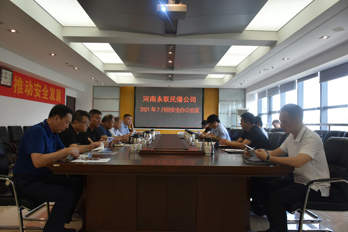 2021年7月30日,河南省永聯民爆器材股份有限公司召開了7月份安全辦公會議,公司領導班子成員、安委會成員、安委會辦公室成員以及禹州、舞鋼市、確山縣、澠池縣、偃師市、信陽等6家分公司負責人參加了會議。會議由公司副總經理靳義國主持,公司董事長、總經理劉嵩參加會議并講話。