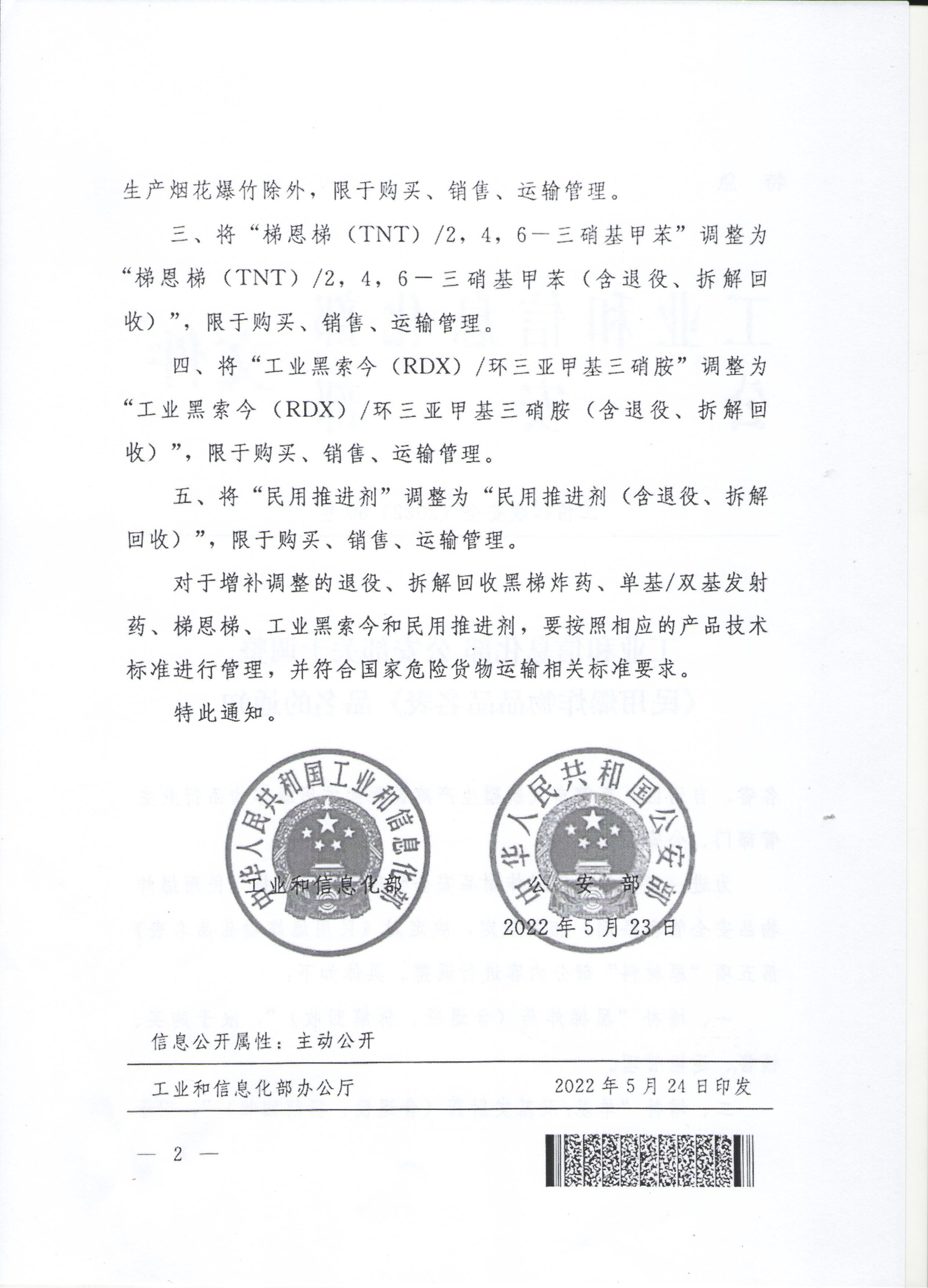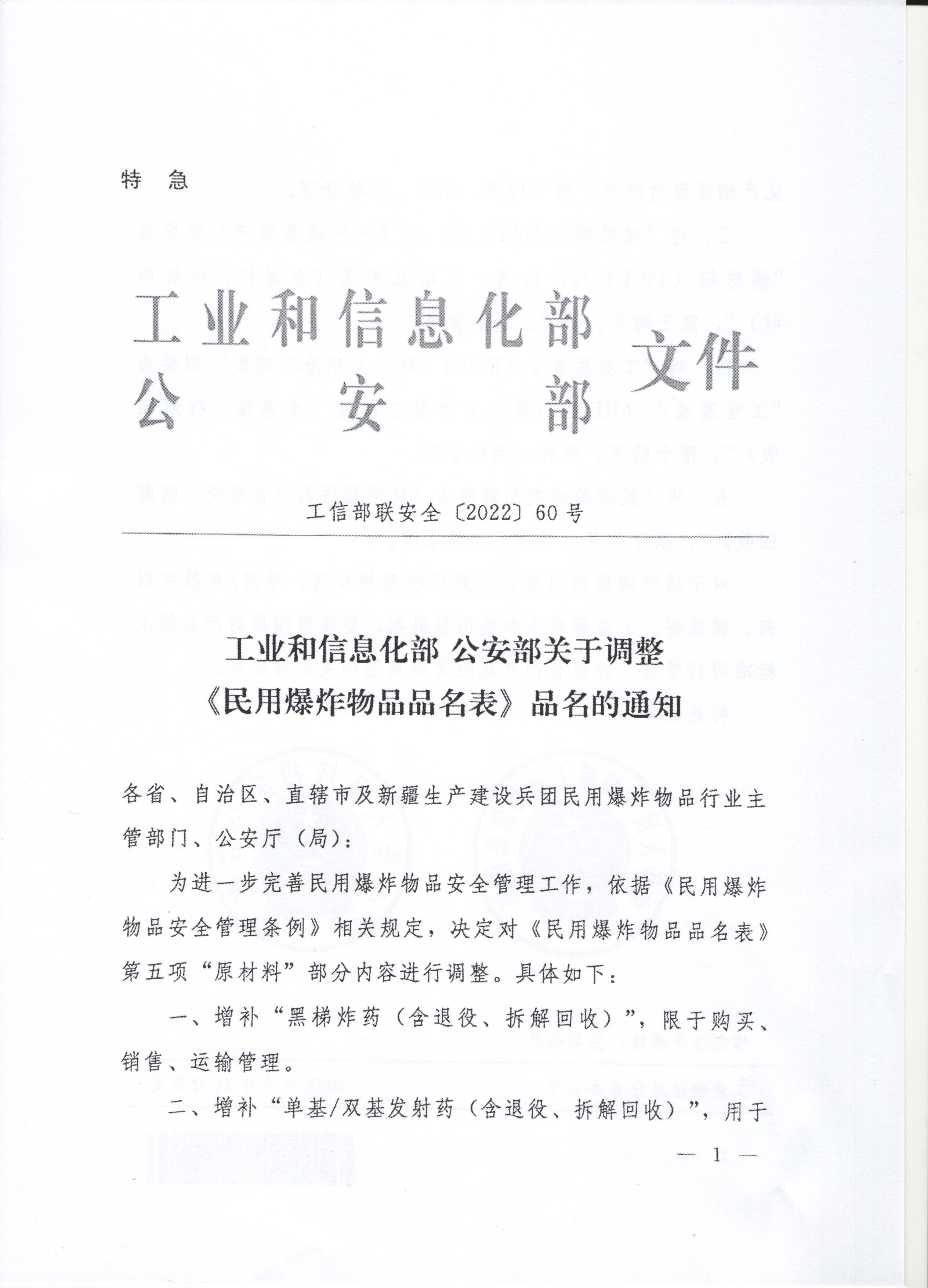 關于調(diào)整《民用爆炸物品品名表》品名的通知