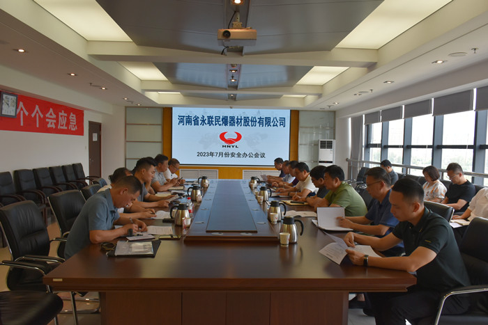 2023年7月28日,河南省永聯民爆器材股份有限公司召開了7月份安全辦公會議,公司領導班子、安委會成員、安委會辦公室成員以及宜陽縣、光山縣、汝州、鎮平、陜州、寶豐縣等6家分公司負責人參加了會議。會議由公司副總經理靳義國主持。