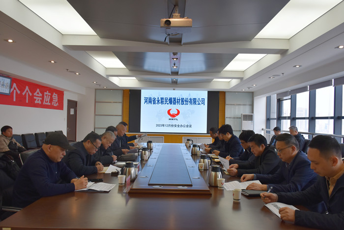 2023年12月27日,河南省永聯民爆器材股份有限公司召開了12月份安全辦公會議,公司領導班子、安委會成員、安委會辦公室成員以及靈寶市、登封市、輝縣市、淇縣、魯山縣、方城縣等6家分公司負責人參加了會議。會議由公司副總經理靳義國主持,公司董事長、總經理劉嵩參加會議并講話。