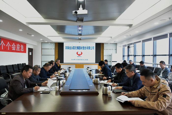 2024年3月29日,河南省永聯民爆器材股份有限公司召開了3月份安全辦公會議,公司領導班子、安委會成員、安委會辦公室成員以及禹州、安陽市、平頂山力源、宜陽縣、西峽縣、信陽平橋等6家分公司負責人參加了會議。會議由公司副總經理秦紅主持,公司董事長、總經理劉嵩參加會議并講話。