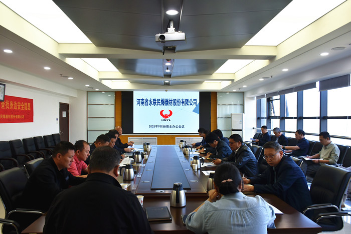 2025年9月24日,河南省永聯(lián)民爆器材股份有限公司召開了9月份安全辦公會議。公司安委會成員、安委會辦公室成員以及登封市、平頂山力源、南召縣、內(nèi)鄉(xiāng)縣、陜州、偃師等6家分公司負(fù)責(zé)人參加了會議。會議由公司工會主席黃小虎主持,董事長劉嵩、總經(jīng)理靳義國參加會議并講話。